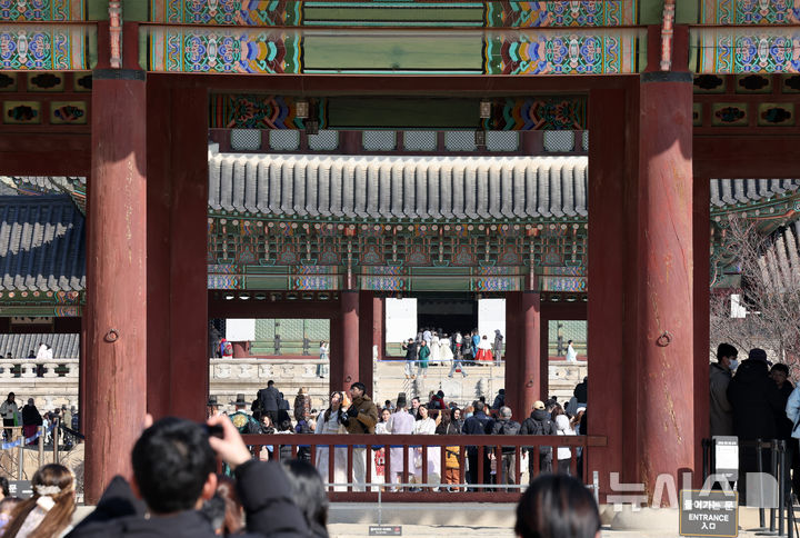温かい天気の中、景福宮を訪れた観光客(3/7)