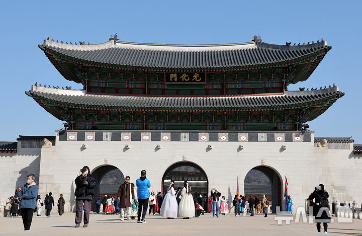 温かい天気の中、景福宮を訪れた観光客(4/7)
