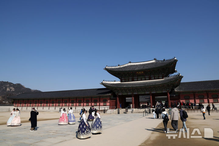 温かい天気の中、景福宮を訪れた観光客(5/7)