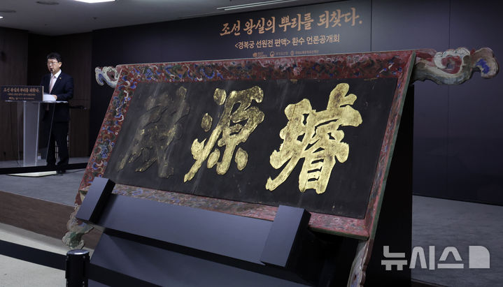 「景福宮璿源殿扁額」を公開する崔応天・国家遺産庁長(2/3)