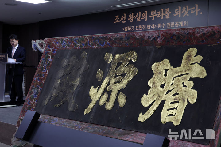 「景福宮璿源殿扁額」を公開する崔応天・国家遺産庁長(3/3)