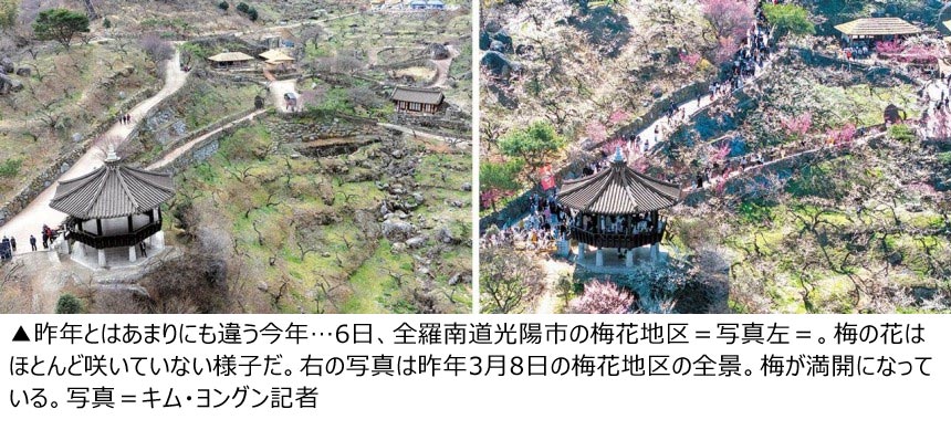 「枝しか見られなかった」 開花率7%で梅祭り開幕、来場者がっかり /全南・光陽(2/2)