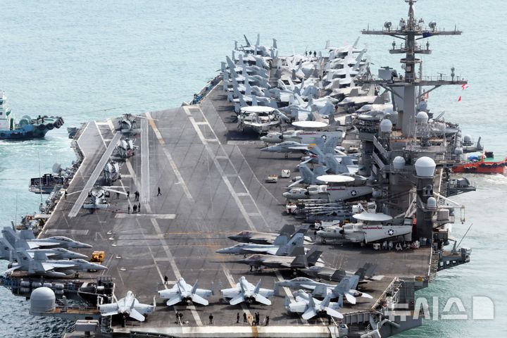 米空母「カール・ビンソン」、釜山出港(2/10)