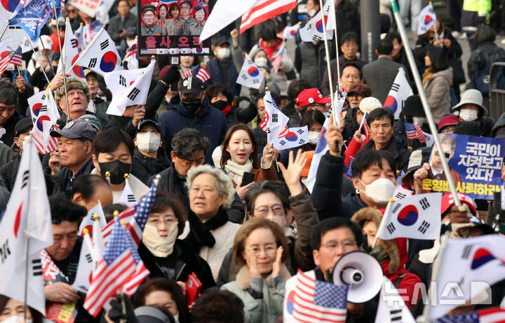 尹大統領の拘束取り消し決定 官邸前に集まった支持者たち(2/6)