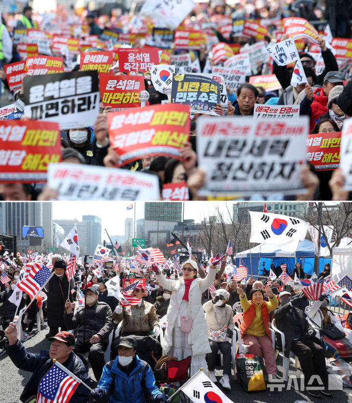 ソウル都心で開かれた大統領弾劾賛成/反対集会(3/8)