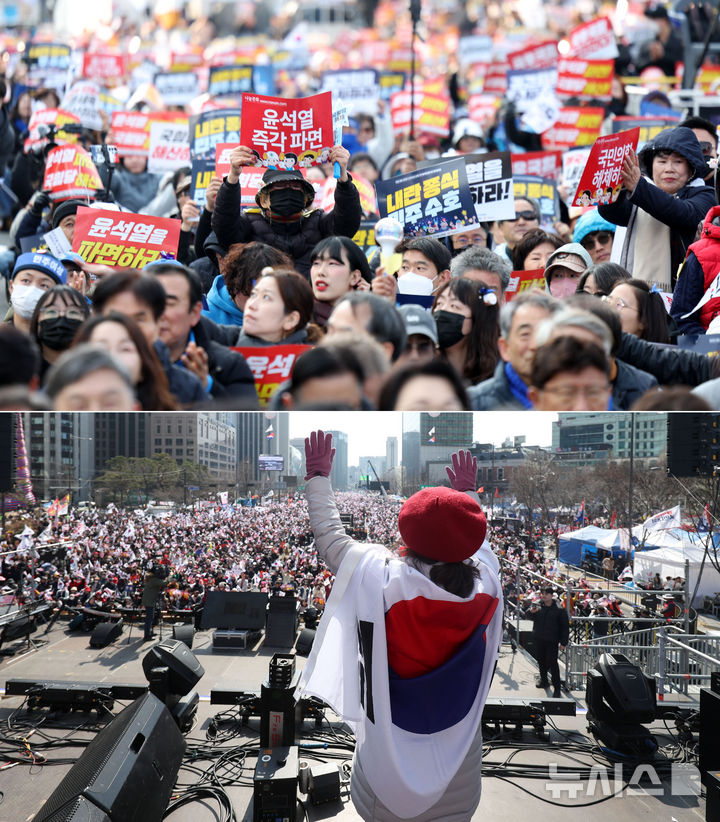ソウル都心で開かれた大統領弾劾賛成/反対集会(4/8)