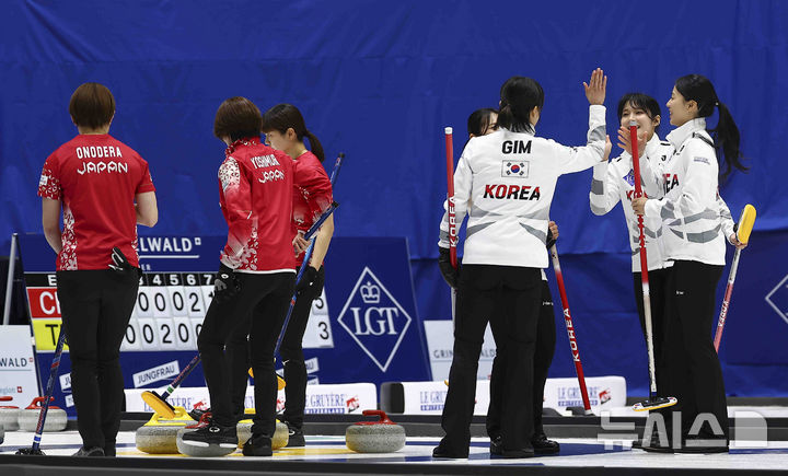 韓日戦に勝利した韓国女子カーリングチーム(6/6)