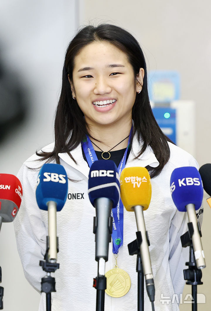 バドミントン:全英オープン金メダルを手に帰国した安洗塋(2/18)