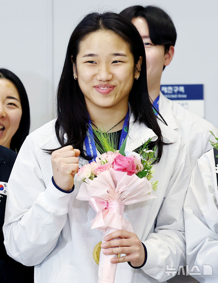 バドミントン:全英オープン金メダルを手に帰国した安洗塋(4/18)