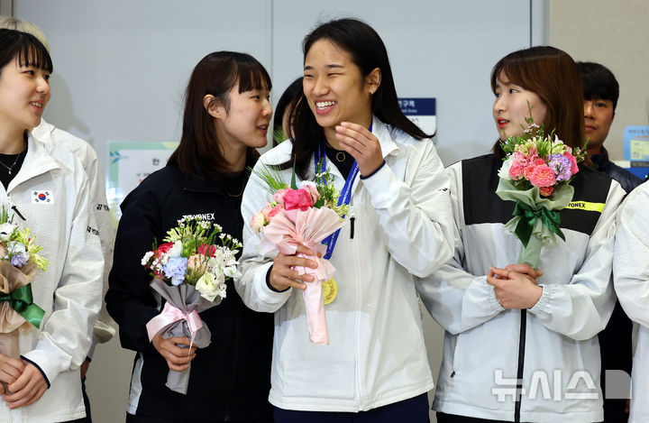 バドミントン:全英オープン金メダルを手に帰国した安洗塋(9/18)