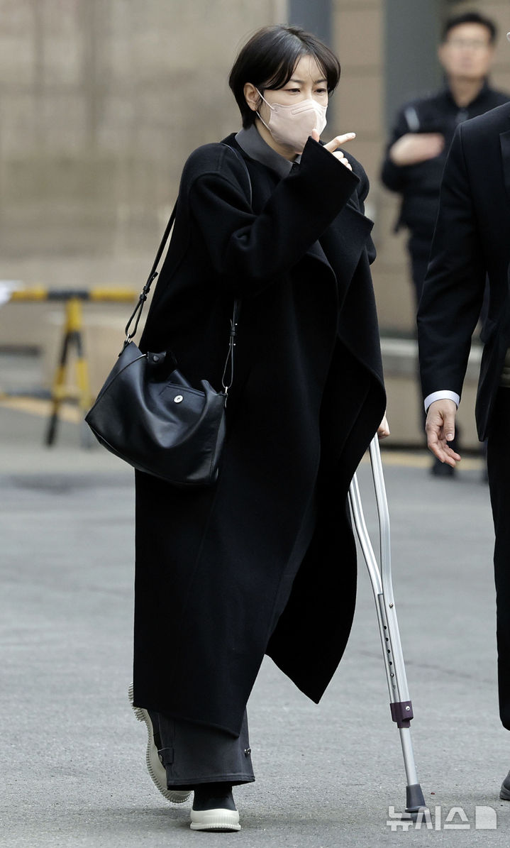 公判を終えて裁判所から移動するムン・ダヘ氏(2/7)