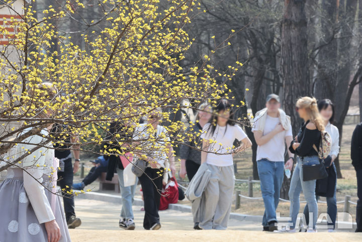 もうすっかり春…景福宮を訪れた観光客たち /ソウル(2/12)