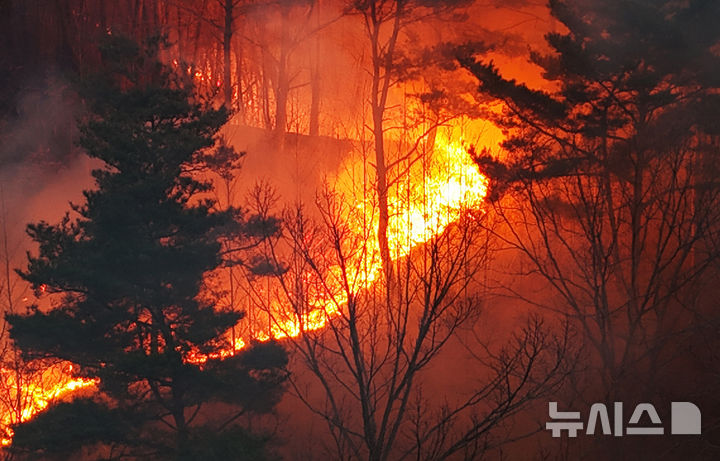 韓国で大規模な山火事:迫る火の手 /慶尚南道(2/8)