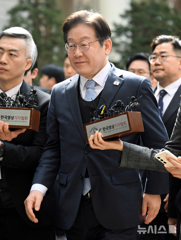 控訴審の判決公判に出廷する李在明・共に民主党代表(4/8)