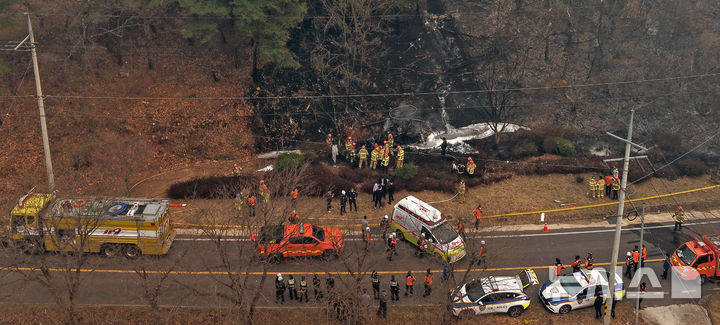 山火事鎮火ヘリ墜落事故現場…燃え尽きて消えた機体=義城(7/8)