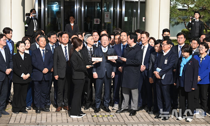 無罪判決を受けて見解を表明する李在明代表(3/14)