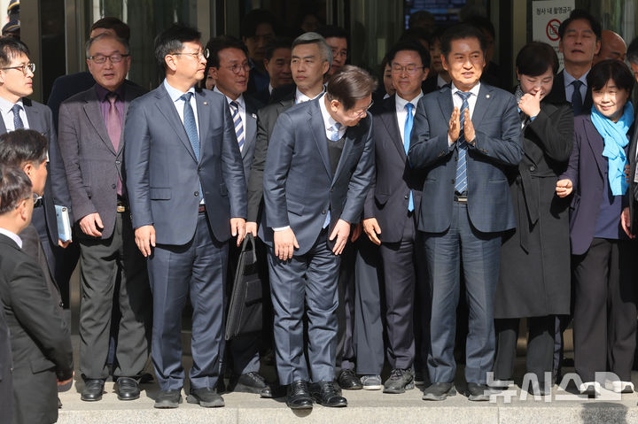 無罪判決を受けて見解を表明する李在明代表(5/14)