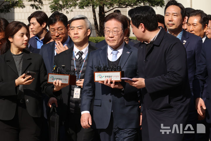 無罪判決を受けて見解を表明する李在明代表(9/14)