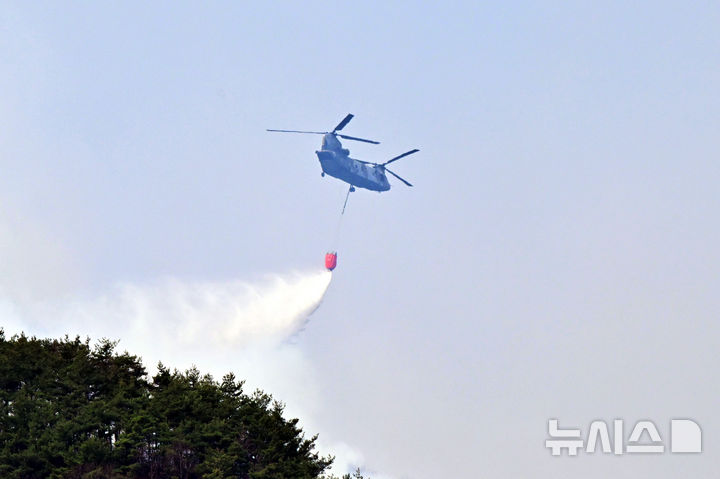 山火事の消火作業に当たる軍用ヘリ(5/6)