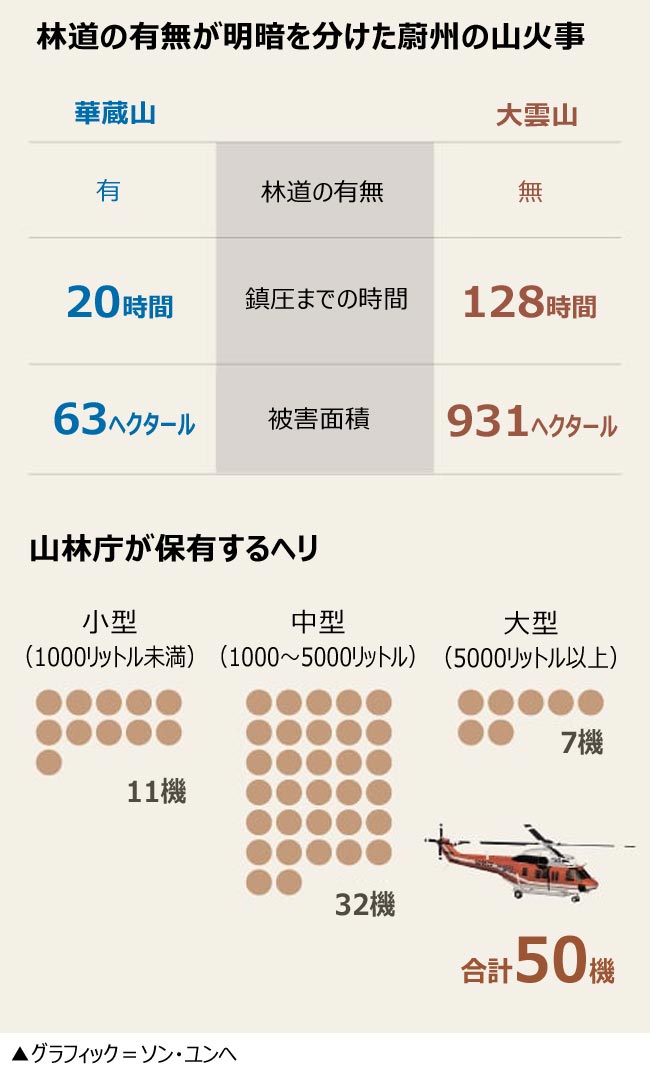 蔚州の山火事「1日で鎮火」と「6日間延焼」…明暗分けた林道の存在(2/2)
