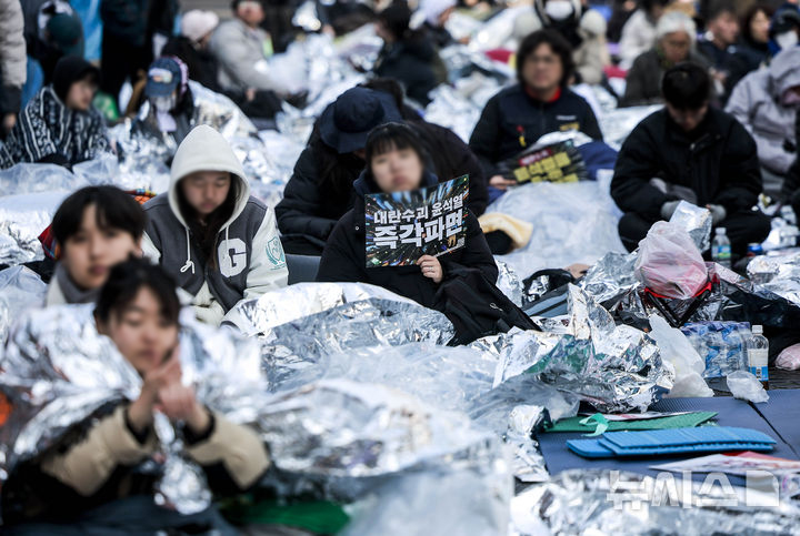 尹大統領の罷免求める徹夜デモ /ソウル(13/15)