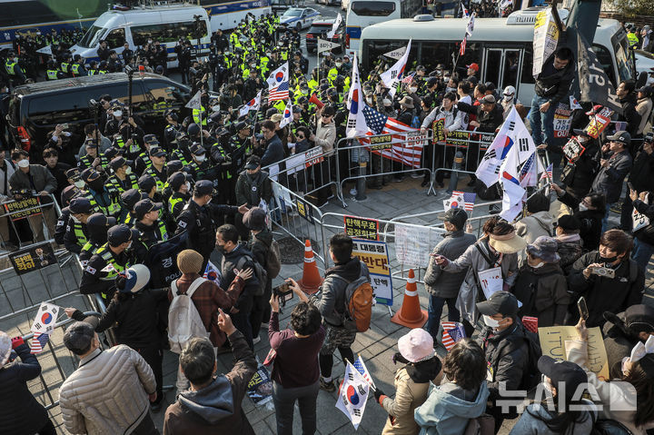 韓国警察がデモ隊締め出し 憲法裁判所の半径100m以内から /ソウル(2/14)