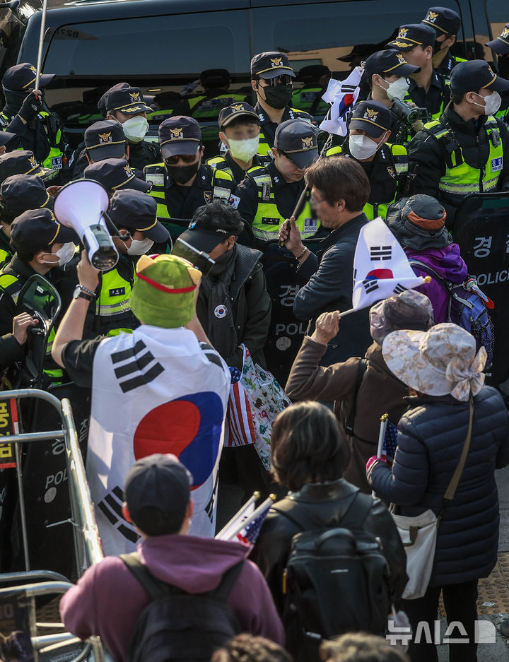 韓国警察がデモ隊締め出し 憲法裁判所の半径100m以内から /ソウル(12/14)