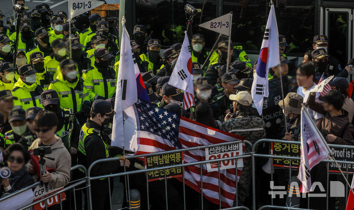 韓国警察がデモ隊締め出し 憲法裁判所の半径100m以内から /ソウル(4/14)