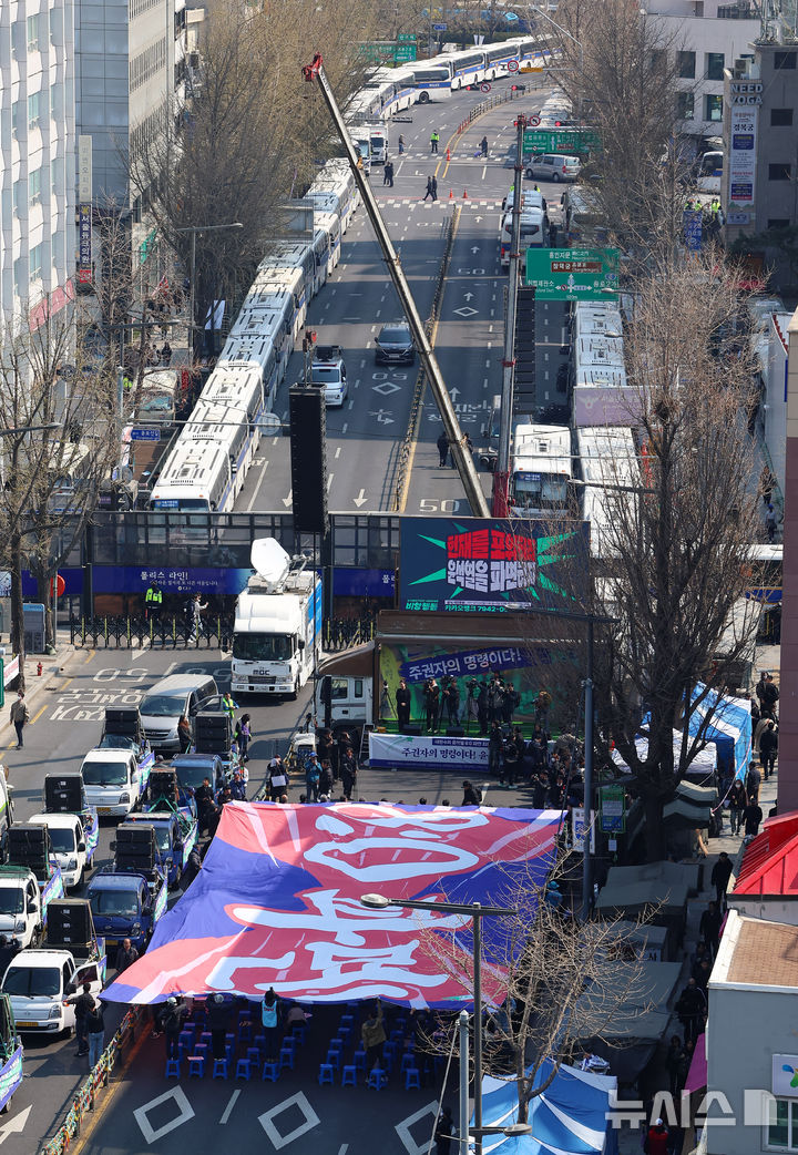 「内乱首魁8:0罷免最後通牒宣布」の大型の垂れ幕(2/8)