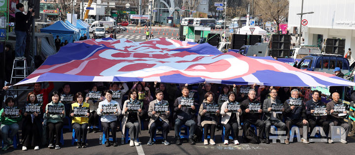 「内乱首魁8:0罷免最後通牒宣布」の大型の垂れ幕(3/8)