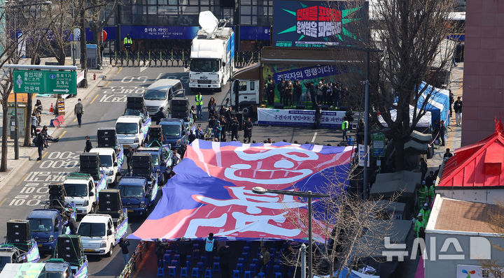「内乱首魁8:0罷免最後通牒宣布」の大型の垂れ幕(4/8)