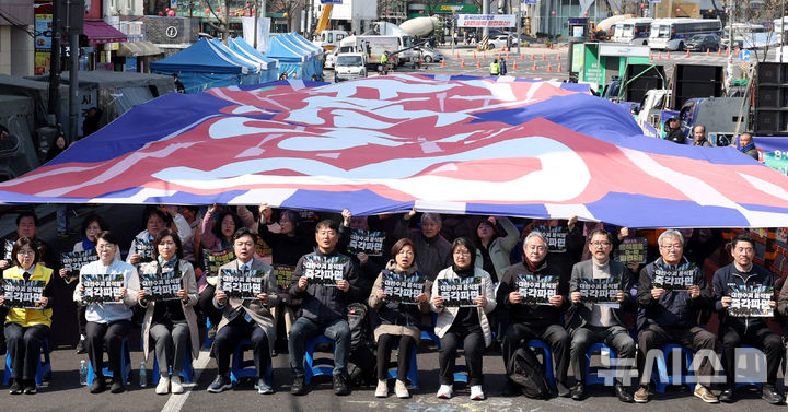 「内乱首魁8:0罷免最後通牒宣布」の大型の垂れ幕(6/8)