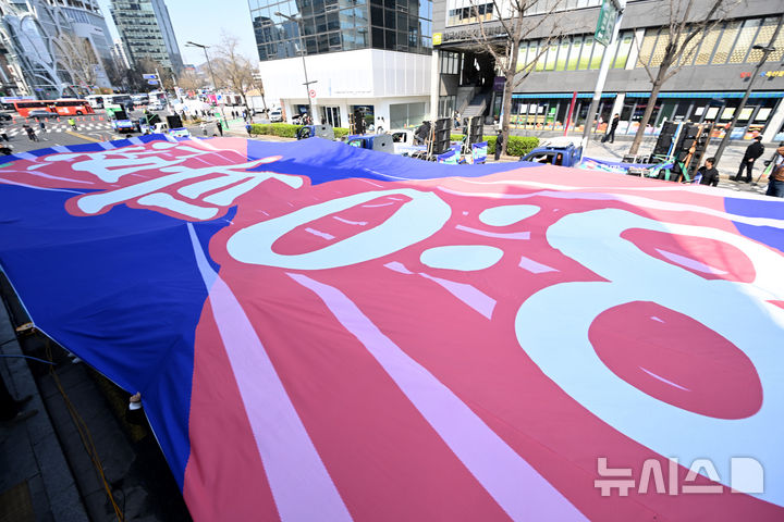 「内乱首魁8:0罷免最後通牒宣布」の大型の垂れ幕(7/8)