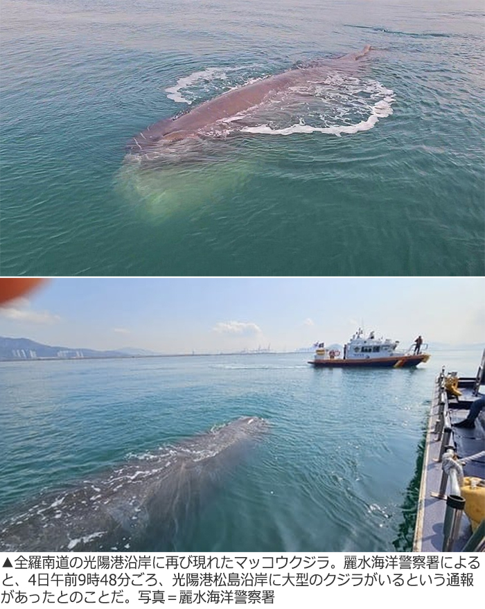 方向感覚失った? 体長15mのマッコウクジラ 光陽港沿岸を四日間さまよう /全羅南道(2/2)
