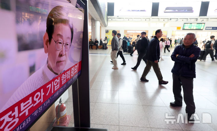 李在明・共に民主前代表の大統領選挙出馬宣言を見る人々 /ソウル(8/9)