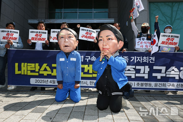 尹・前大統領夫妻の勾留を求めるパフォーマンス(1/9)