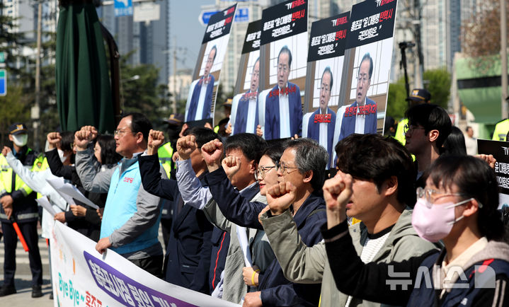洪準杓市長のプラカードに塩をまく市民団体(4/7)