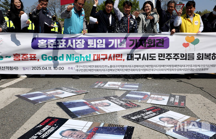 洪準杓市長のプラカードに塩をまく市民団体(5/7)