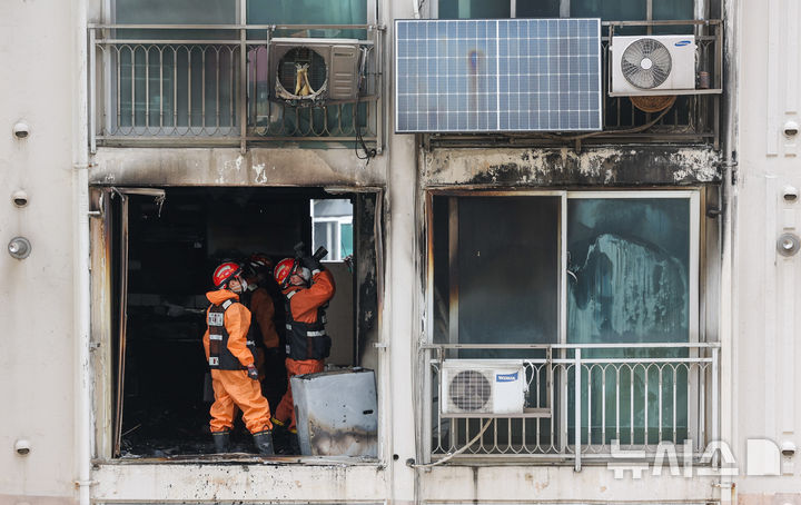 マンション火災現場を調べる消防隊員 /ソウル(3/6)