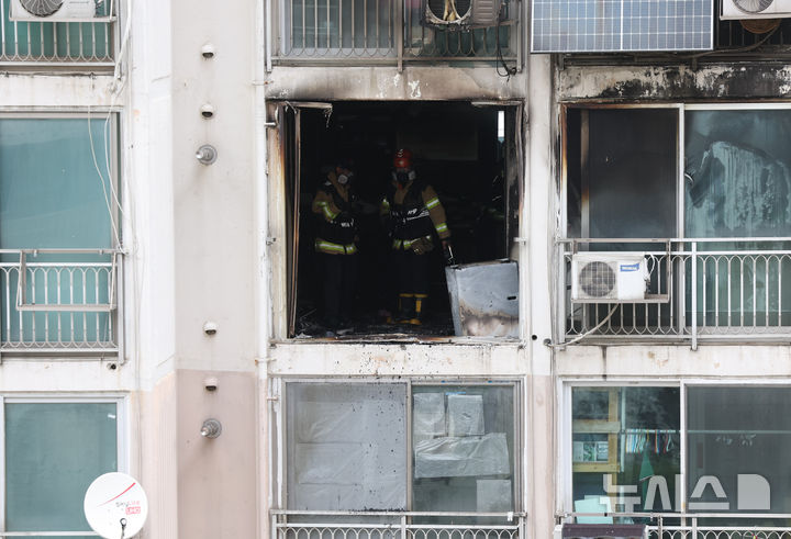 マンション火災現場を調べる消防隊員 /ソウル(6/6)