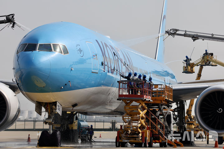 大韓航空、春に合わせて航空機の胴体洗浄を実施(2/10)