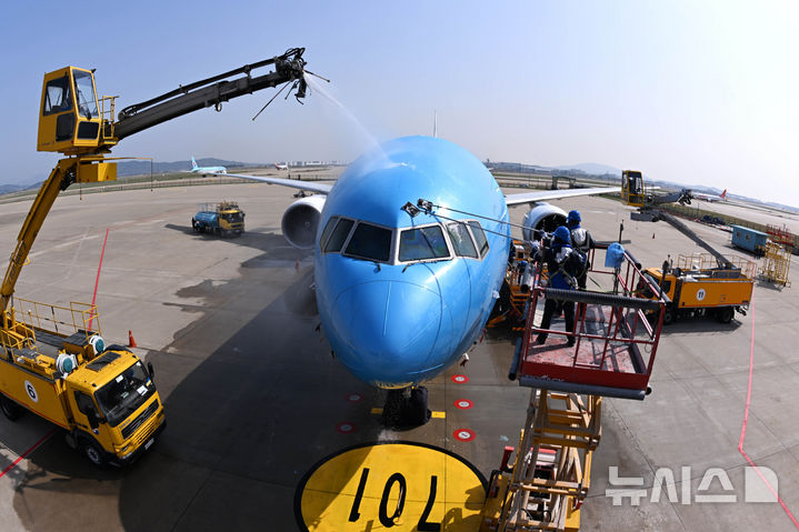 大韓航空、春に合わせて航空機の胴体洗浄を実施(6/10)