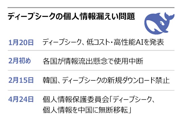 韓国当局「中国ディープシークが韓国ユーザーの個人情報・入力ワードを中国に無断移転」(1/1)