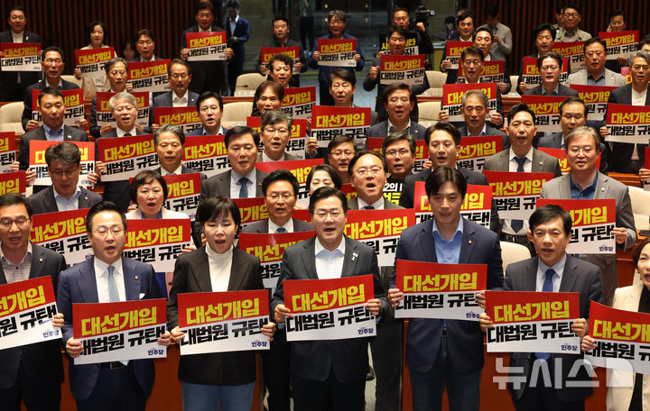 「大統領選挙介入大法院糾弾」シュプレヒコールを上げる共に民主党議員たち(2/10)