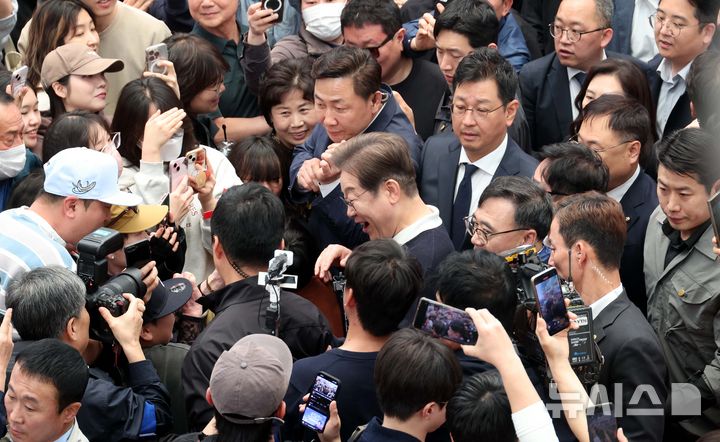 支持者たちに囲まれる李在明・共に民主党大統領選候補 /忠清北道(2/10)