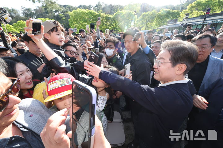 支持者たちに囲まれる李在明・共に民主党大統領選候補 /忠清北道(6/10)