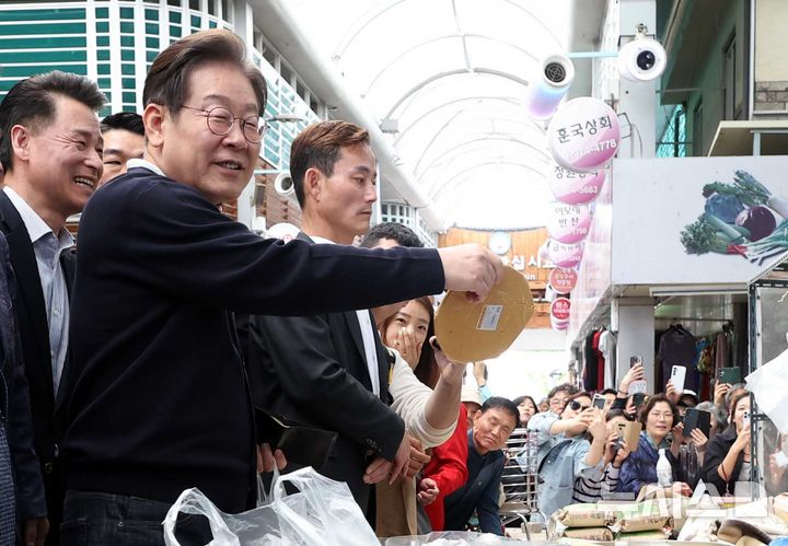 支持者たちに囲まれる李在明・共に民主党大統領選候補 /忠清北道(8/10)