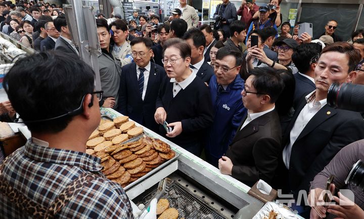 支持者たちに囲まれる李在明・共に民主党大統領選候補 /忠清北道(9/10)