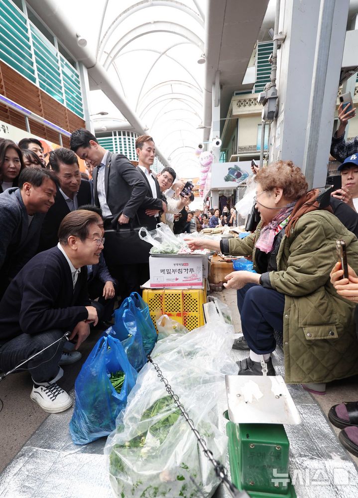 支持者たちに囲まれる李在明・共に民主党大統領選候補 /忠清北道(10/10)