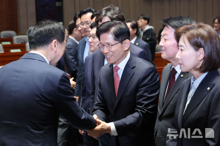両手の拳を握りしめる与党・国民の力の金文洙大統領選候補 /ソウル(8/9)